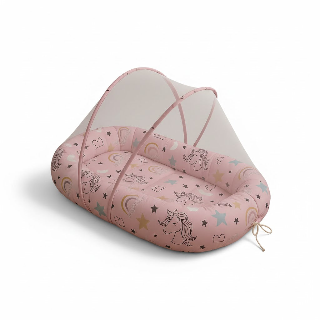 Give your little one the gift of comfort and security with our adorable baby nest. This high-quality, plush nest is designed for ultimate softness, featuring realistic fabric textures and gentle shadows that highlight its luxurious feel. The delightful, whimsical pattern on the cushion adds a touch of playful charm, making it a perfect addition to any nursery or living space.