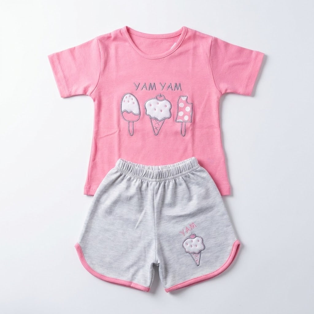 بيجامه نص كم ايس كريم شورت بينك