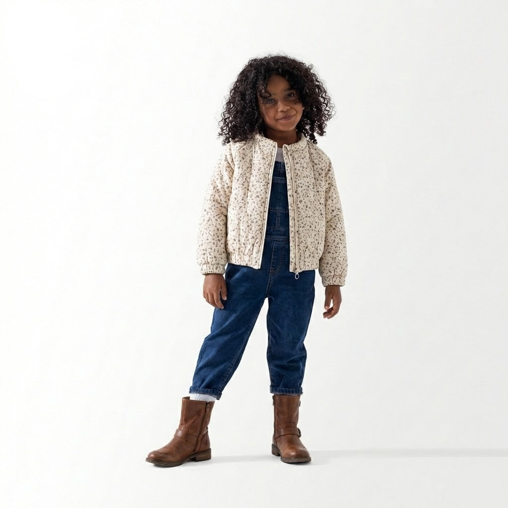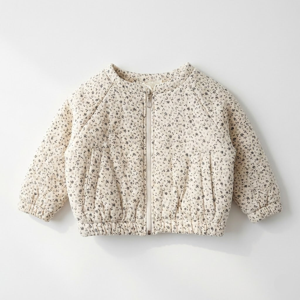 جاكيت أطفال مبطنة بنقشة الزهور الرقيقة - لون كريمي وتصميم عصري