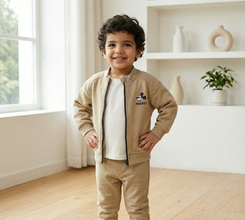 جاكيت أطفال "ميكي" بيج غامق - أناقة عصرية وملمس ناعم
