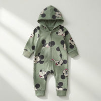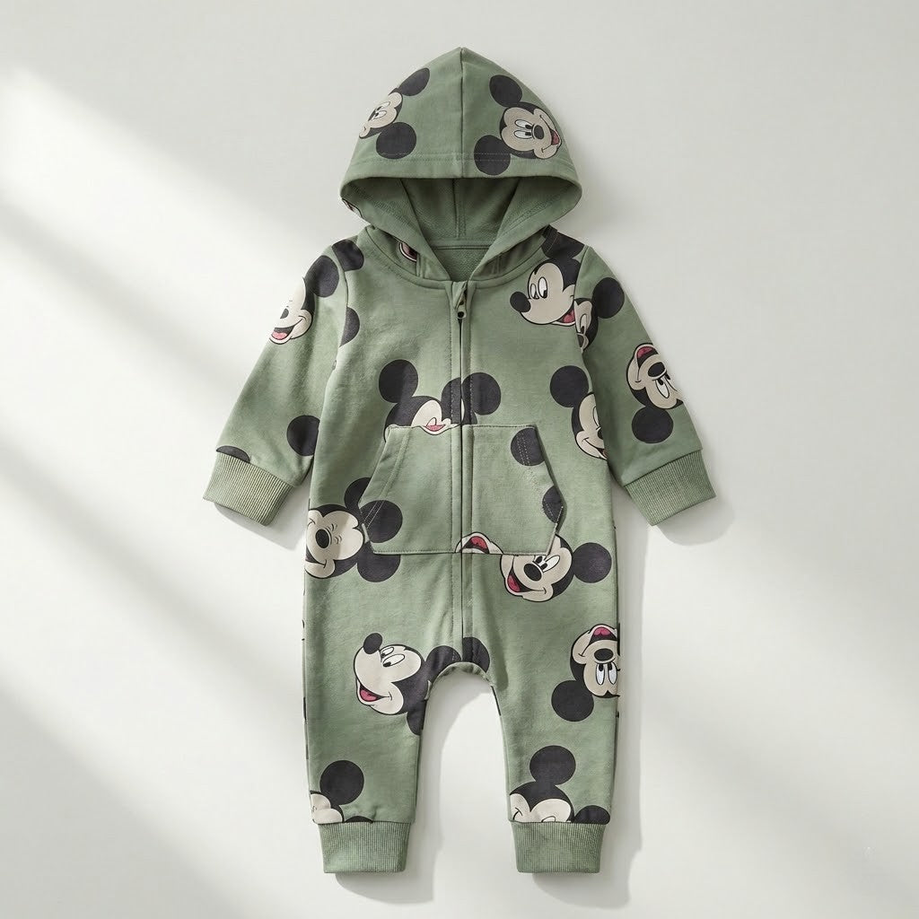 سالوبيت أطفال قطني مريح بطبعة "ميكي ماوس" وغطاء رأس - لون أخضر زيتوني
