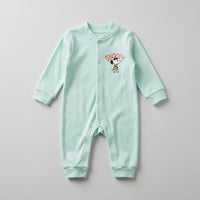 سالوبيت أطفال قطني ناعم بأكمام طويلة وطبعة "سنوبي" - أخضر فاتح