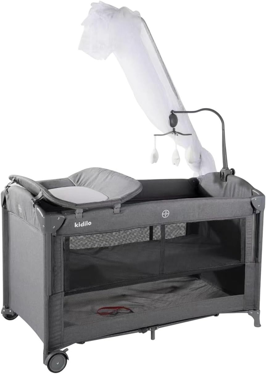 سرير أطفال كيديلو محمول ومتعدد الوظائف مع ناموسية - رمادي