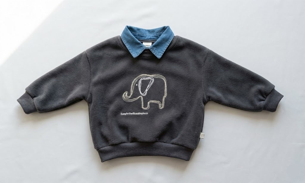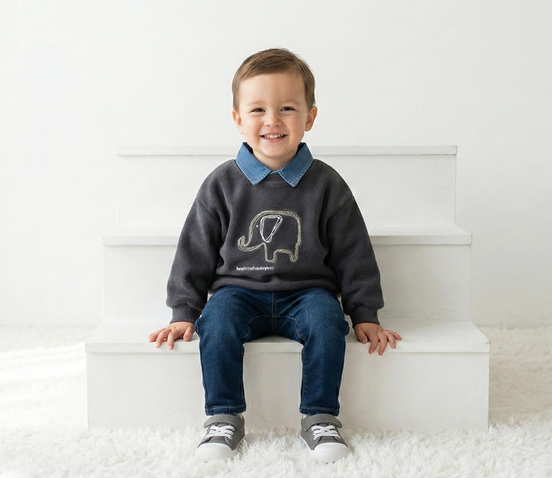 امنحي طفلك إطلالة شتوية أنيقة ودافئة مع هذا السويت شيرت المميز. يجمع التصميم بين الراحة والأناقة، حيث يأتي بخامة شتوية ناعمة (فليس/قطيفة) باللون الرمادي الداكن، مع ياقة جينز مدمجة تضفي لمسة "سمارت كاجوال" عصرية دون الحاجة لارتداء طبقات متعددة.