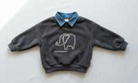 سويت شيرت أولادي شتوي فاخر - خامة ناعمة بياقة جينز وتطريز فيل مميز