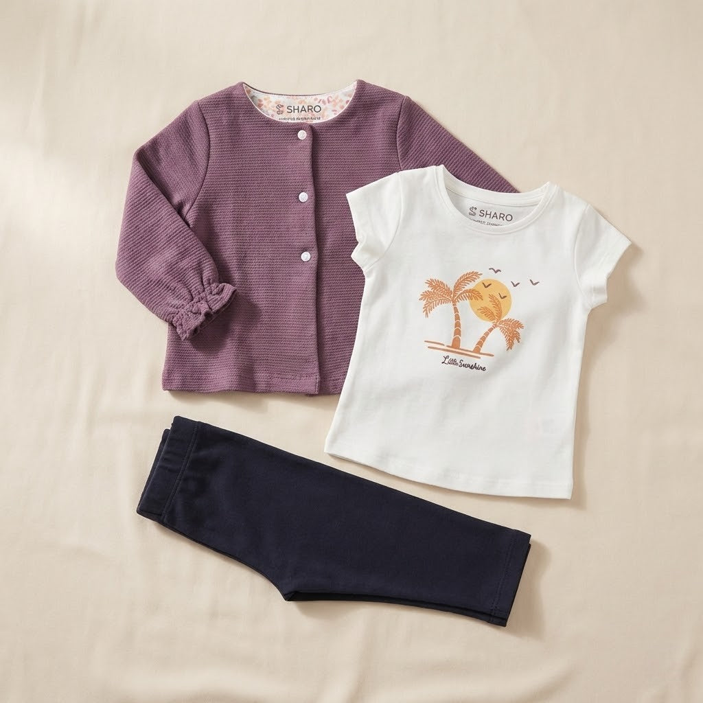 امنحي طفلك إطلالة تجمع بين الدفء والأناقة مع هذا الطقم المتميز المكون من ثلاث قطع، والمصمم بعناية ليناسب بشرة طفلك الرقيقة