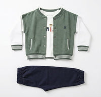 طقم أطفال ثلاثي القطع: سويت شيرت و شيرت وبنطال مريح باللون الأخضر