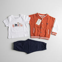 طقم أطفال ثلاثي القطع: سويت شيرت و شيرت وبنطال مريح باللون البرتقالي