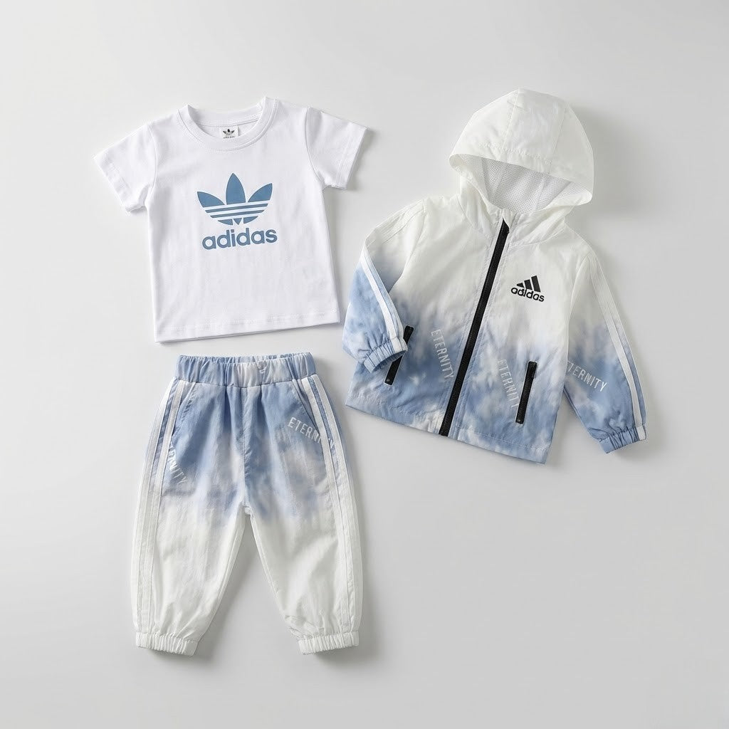 طقم رياضي "أديداس" للأطفال بلمسة عصرية - لون بيبي بلو وأبيض