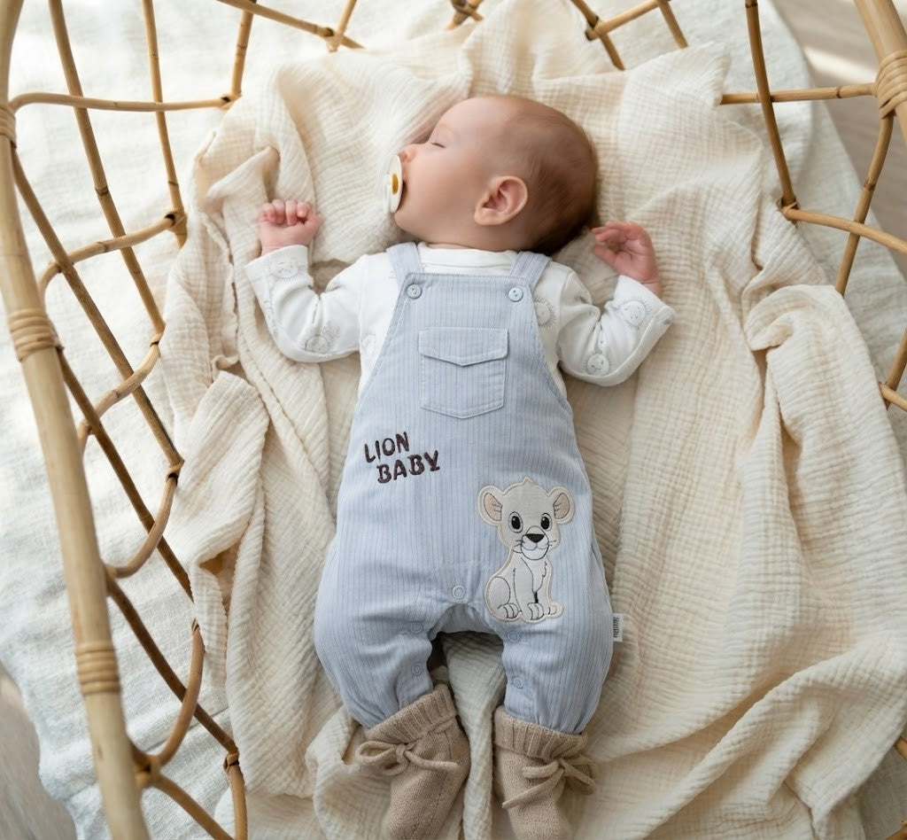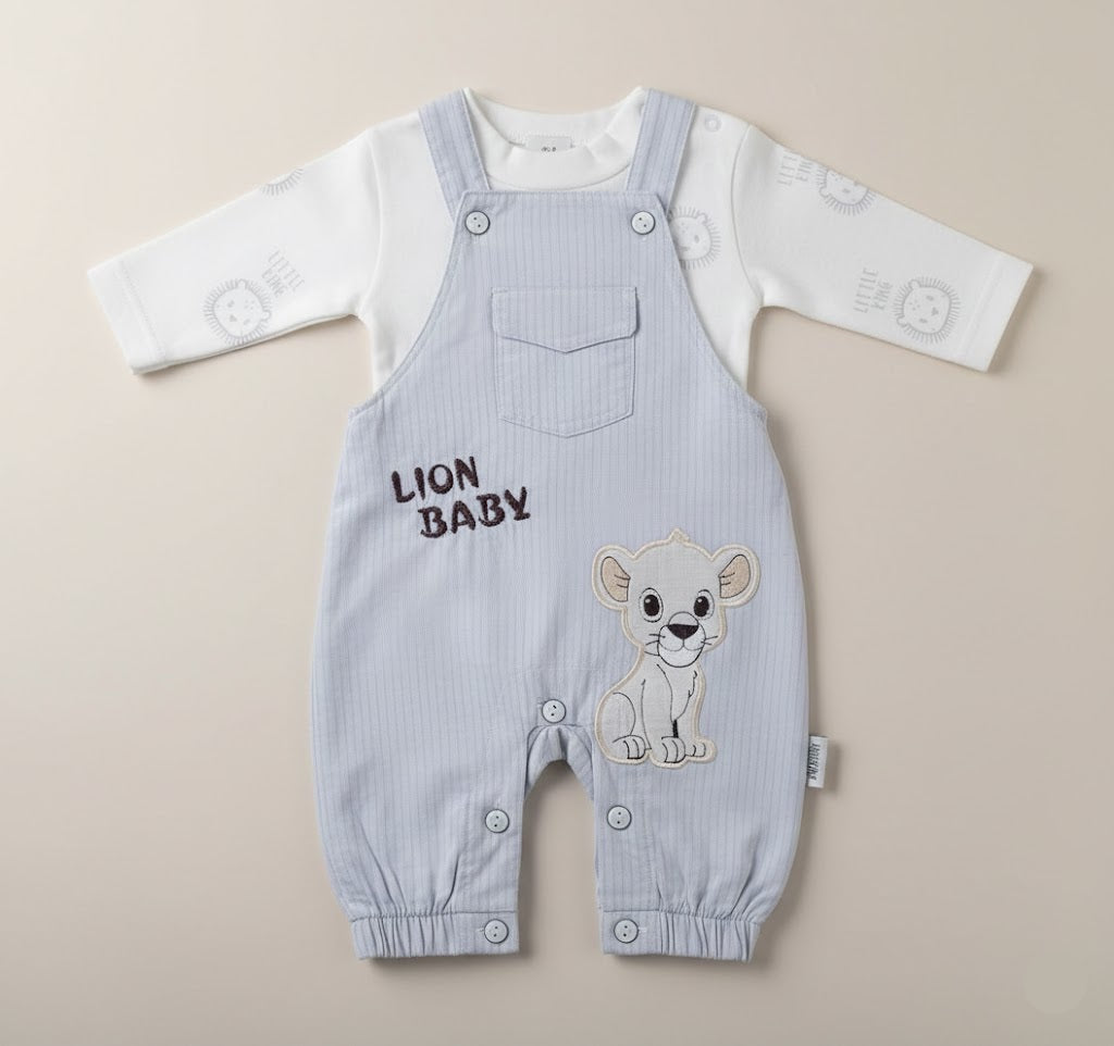 طقم سالوبيت أطفال ولادي فاخر - سالوبيت رصاصي فاتح مطرز برسمة شبل الأسد و شيرت قطني ناعم