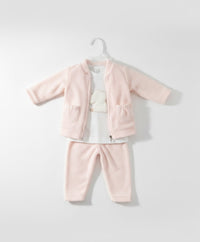 طقم أطفال قطيفة وردي ساحر - جاكيت وسروال منسوج ناعم، مثالي لأناقة وراحة صغيرك!