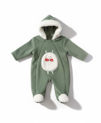 Adorable Plush Bear Hooded Baby Green Romper - Soft Corduroy Newborn Jumpsuit