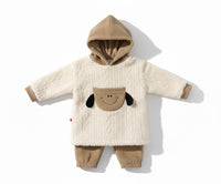 Wrap your little one in ultimate comfort and cuteness with our Adorable Plush Sheep Hooded Baby Outfit! This two-piece set features a super soft, cream-colored fleece hoodie with a charming sheep face detail on the front pocket and cute floppy ears. The matching corduroy pants complete the look, making it perfect for snuggles, playtime, or even a delightful photo opportunity.