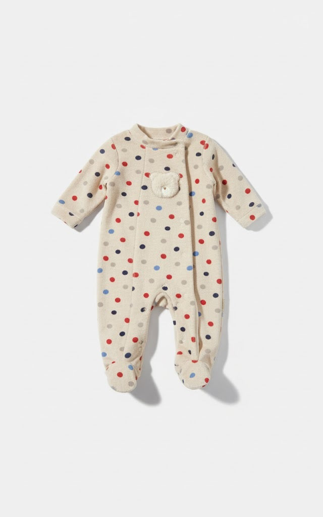 أناقة "الدب الصغير" ونعومة لا تقاوم! 🐻 دوتس خلي شتاء طفلك دافي ومنور مع الأوفرول المنقط الجديد. الخامة مخملية ناعمة جداً، والتصميم كامل بالأقدام عشان طفلك ما يبرد أبداً. تطريز الدب على الصدر يجنن والوان "البولكا دوت" تعطي لوك شيك ومرتب. ✅ خامة دافئة وناعمة (Plush). ✅ أقدام متصلة لتدفئة كاملة. ✅ أزرار ضغط لسهولة اللبس