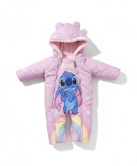 لعشاق "ستيتش".. ألطف وأدفا Snowsuit وردي! 💖👽 خلي طفلتك تستعد للبرد بستايل ديزني الساحر. رومبير ستيتش المبطن وصل، بخامة مخملية وقبعة فرو تدفي من قلب. التصميم الملون بقوس المطر يخليها تنور في عز الشتاء! ✅ خامة مبطنة "Quilted" للتدفئة القصوى. ✅ قبعة بتبطين فرو ناعم جداً. ✅ طبعة ستيتش الأصلية والمبهجة