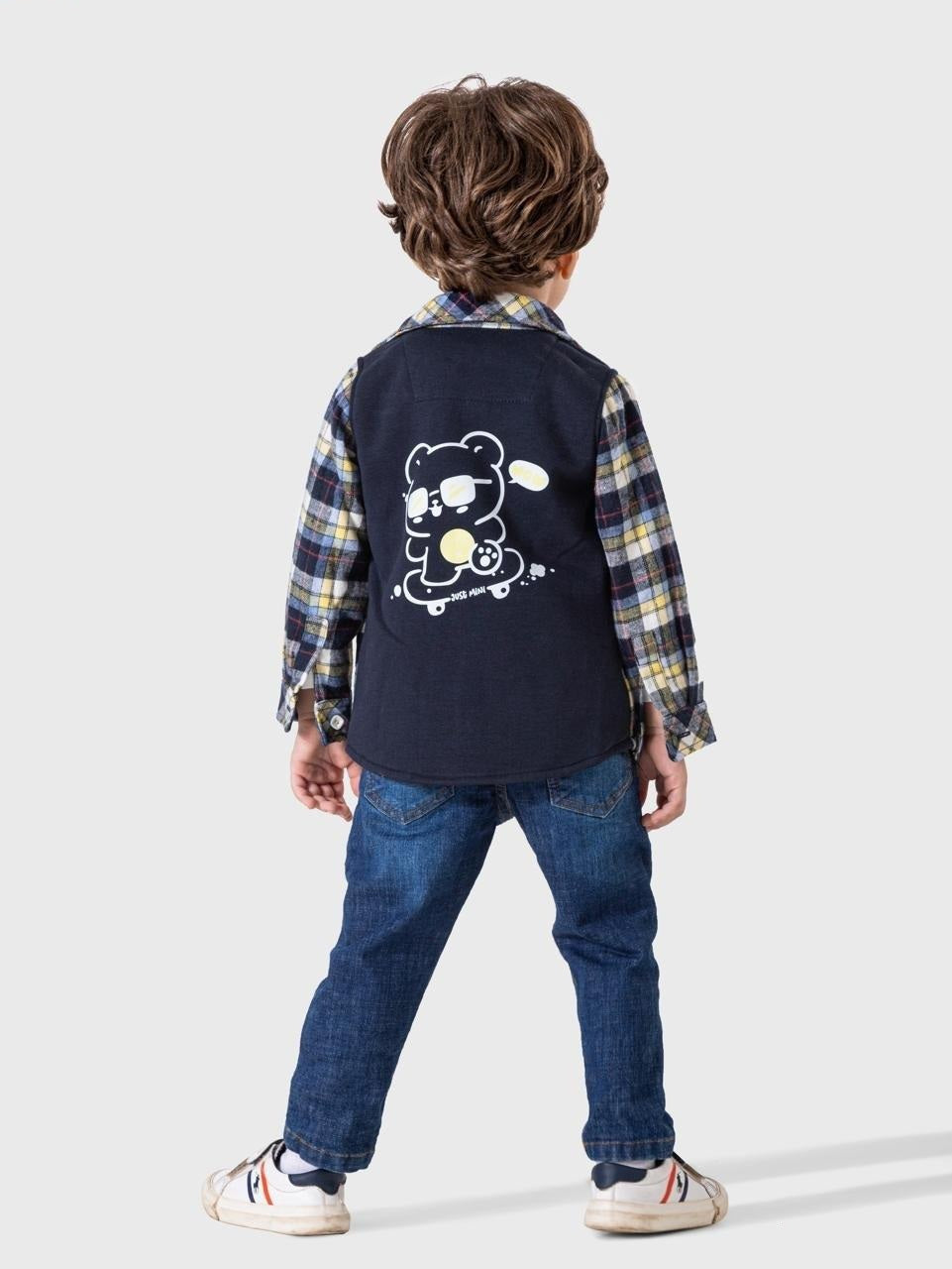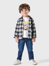 طقم أولادي: قميص فلانيل كاروهات وتيشيرت بطبعة جذابة