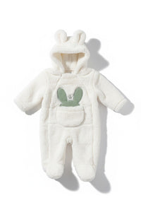 Cozy Bunny Ear Hooded Plush Baby Romper - White