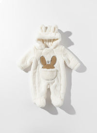 Cozy Bunny Ear Hooded Plush Baby Romper - White