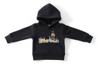 Playful "Boston" Rainbow Text Baby Hoodie - Cozy Black Fleece