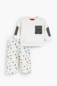 High Quality Cotton Blend and comfy Round Pajamas Set Long Sleeve (T-Shirt & Printed Pants )