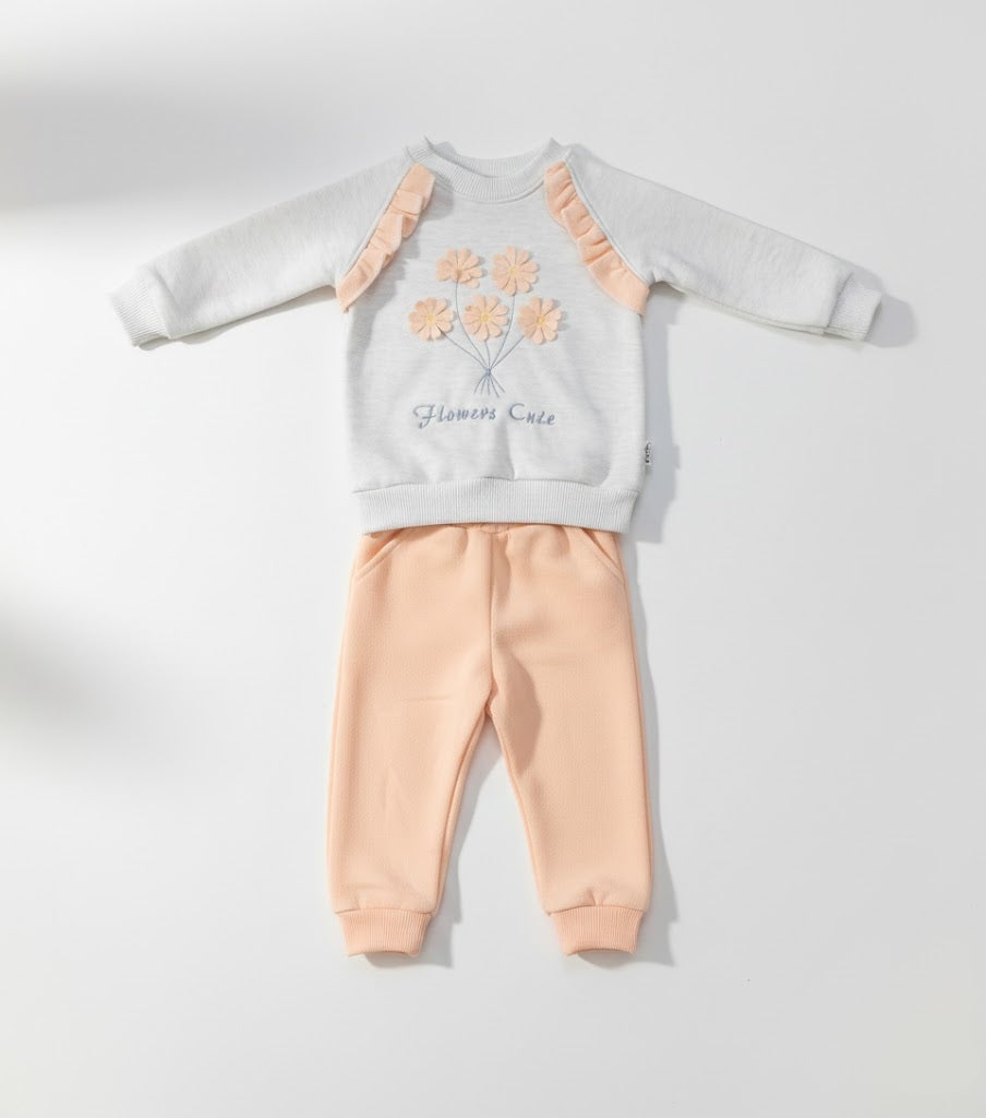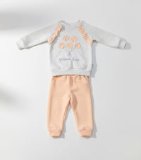 طقم رياضي للأطفال مطرز بالورود الناعمة (سويت شيرت وبنطلون جوغر)
