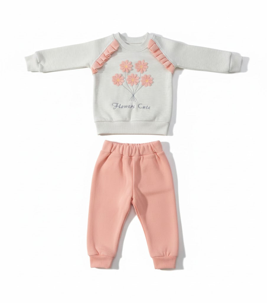 طقم رياضي للأطفال مطرز بالورود الناعمة (سويت شيرت وبنطال)