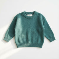 سترة أطفال ناعمة منسوجة بلون أخضر مريمي فاتح، سترة بلوفر بقبة مستديرة مناسبة للجنسين.