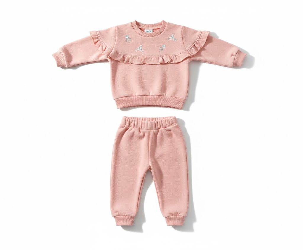 طقم سويت شيرت وبنطلون رياضي للأطفال - وردي ناعم - لإطلالة أنيقة ومريحة (متوفر بألوان وأحجام مختلفة).
